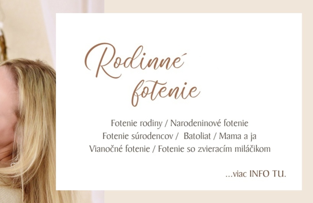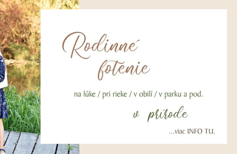 V okolí Soblahova je aj krásne prostredie na fotenie v exteriéri. Mám niekoľko osvedčených miest na fotenie na lúke, pri potoku, pri lese a pod...ale ak máte svoje obľúbené miesto v Trenčíne alebo okolí, rada prídem a spravím krásne fotky aj v pre mňa novom prostredí.