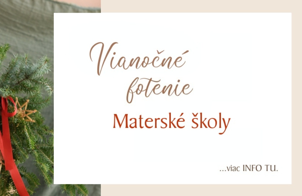 Okrem fotografovania rodín sa venujem aj fotografovaniu mojich obľúbených škôlkarov. S pani učiteľkami v materských školách v Trenčíne a okolí sa už dobre poznáme. Spoločne sa snažíme, aby škôlkarske fotenia bolo pre deti príjemným zážitkom. Každý rok na jar a na Vianoce vymýšlam niečo nové, čo by sa páčilo hlavne vám, rodičom.